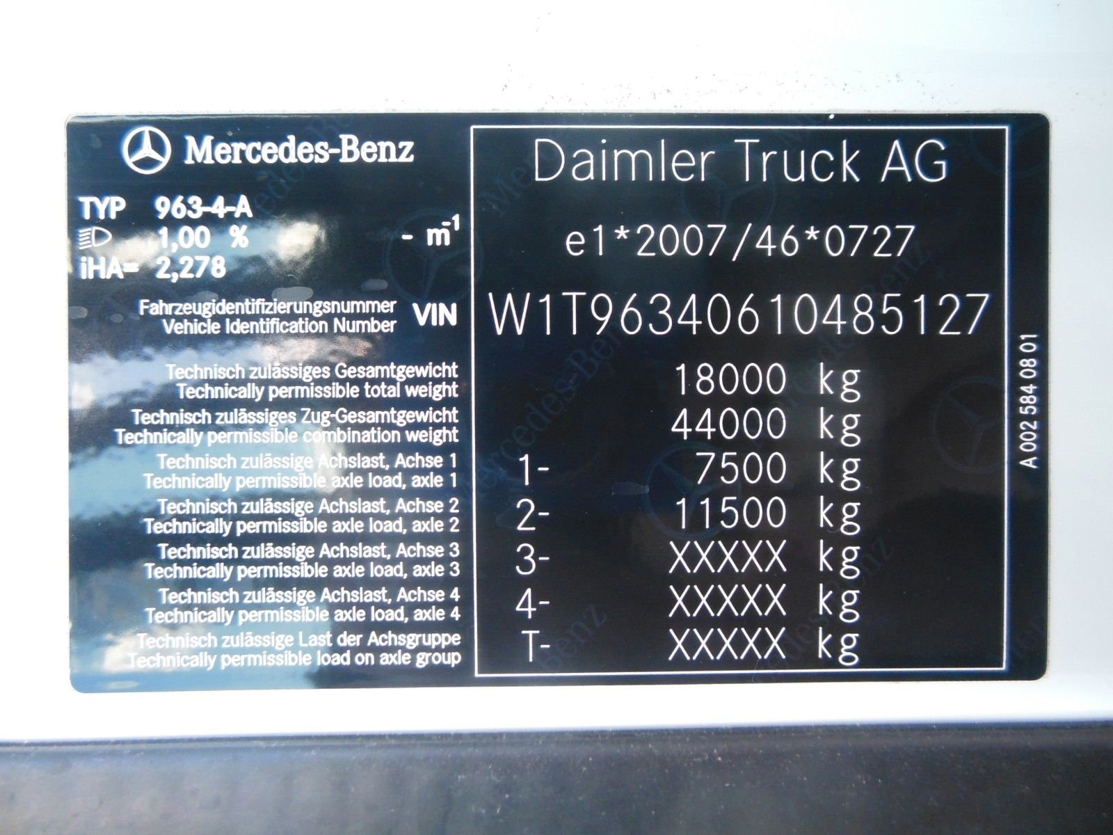 • Celková dovolená hmotnost vozidla (kg): 18000